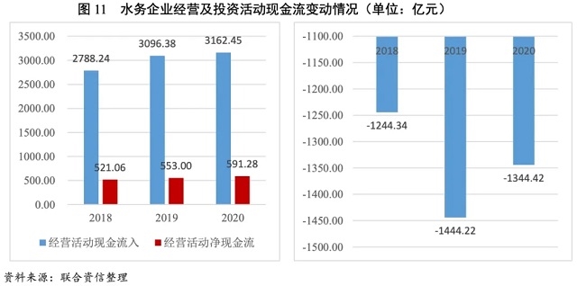 水務(wù)企業(yè)現(xiàn)金流狀況較好,收現(xiàn)能力較強,投資活動現(xiàn)金流出規(guī)模較大,未來隨著污水處理及水環(huán)境治理領(lǐng)域投資需求增長,預(yù)計大規(guī)模投資需求仍將持續(xù)。