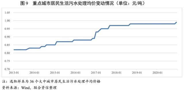 從污水處理價格來看,目前各地污水處理價格仍然由政府決定,價格整體仍然處于低位。根據(jù)國家發(fā)改委《關(guān)于制定和調(diào)整污水處理收費標(biāo)準(zhǔn)等有關(guān)問題的通知》(發(fā)改價格〔2015〕119號),污水處理收費標(biāo)準(zhǔn)要補償污水處理和污泥處置設(shè)施的運營成本并合理盈利。城市污水處理收費標(biāo)準(zhǔn)原則上居民應(yīng)不低于0.95元/噸,非居民不低于1.40元/噸。2020年,在全國省會城市和計劃單列市中,太原市城區(qū)污水處理收費有所調(diào)整,居民用水污水處理收費標(biāo)準(zhǔn)由0.50元/立方米調(diào)整為0.95元/立方米,其他省會城市和計劃單列市污水處理價格保持穩(wěn)定。近年來,我國重點城市居民生活污水處理平均價格雖呈上升趨勢,但該價格僅基本滿足國家規(guī)定收費標(biāo)準(zhǔn)下限,并且居民生活污水處理費排名靠后的城市例如拉薩、??凇⑸钲诘鹊?,污水處理價格處于0.80元/噸——0.90元/噸,尚未滿足國家規(guī)定收費標(biāo)準(zhǔn)0.95元/噸。整體看,污水處理價格仍處低位,部分城市尚有較大上調(diào)空間。