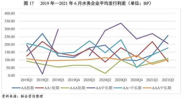 2019年以來,疫情突發(fā)事件及后續(xù)疫情的控制進(jìn)展對我國宏觀經(jīng)濟(jì)及貨幣、財政政策的制定帶來較大影響,水務(wù)企業(yè)債券發(fā)行利率隨之有所波動;水務(wù)企業(yè)不同級別、不同期限發(fā)行利差呈波動態(tài)勢。