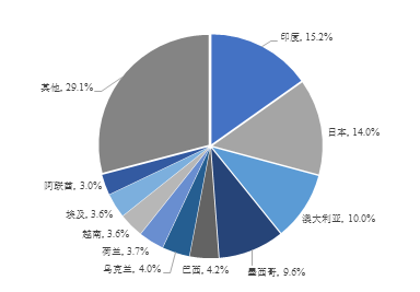 圖9:中國(guó)光伏組件出口國(guó)家和地區(qū)占比(2018年)