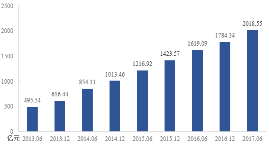 數(shù)據(jù)來(lái)源:中國(guó)銀行保險(xiǎn)監(jiān)督管理委員會(huì). 《2013年6月至2017年6月國(guó)內(nèi)21家主要銀行綠色信貸數(shù)據(jù)》. 2018.02.09.