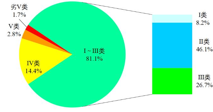 圖2 1-7月全國地表水水質(zhì)類別比例