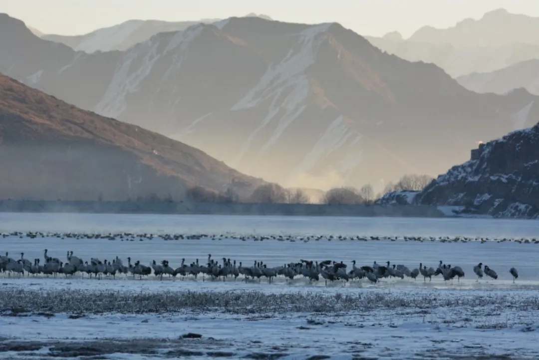 西藏藏南河谷濕地中越冬的黑頸鶴。(來(lái)源:生態(tài)環(huán)境部生物多樣性保護(hù)重大工程項(xiàng)目)