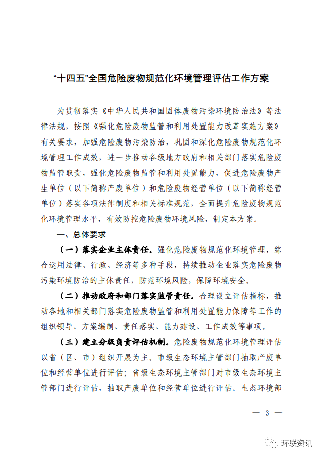 關于印發(fā)《“十四五”全國危險廢物規(guī)范化環(huán)境管理評估工作方案》的通知各省、自治區(qū)、直轄市生態(tài)環(huán)境廳(局),新疆生產建設兵團生態(tài)環(huán)境局: