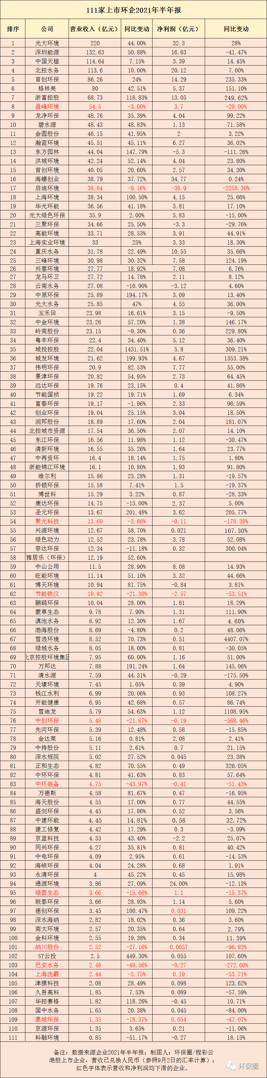 圖一:111家上市環(huán)保企業(yè)2021中報(bào)總體情況