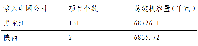 此次公布的非自然人分布式可再生能源發(fā)電并網(wǎng)項(xiàng)目共涉及133個(gè)光伏發(fā)電項(xiàng)目,總裝機(jī)容量75561.82千瓦;接入電網(wǎng)為國(guó)網(wǎng)黑龍江省電力有限公司、國(guó)網(wǎng)陜西省電力公司。