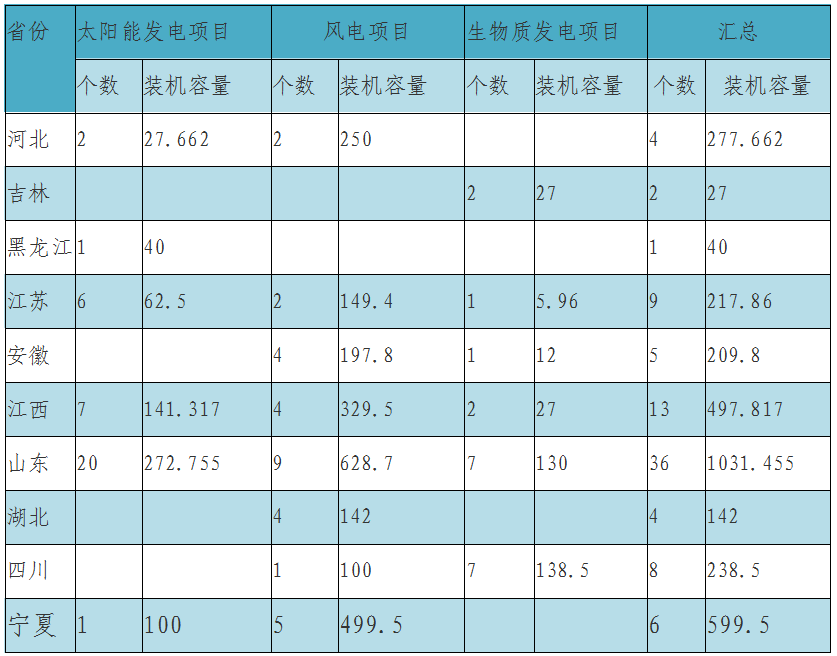 以下為本次公布的集中式可再生能源發(fā)電項(xiàng)目詳情:
