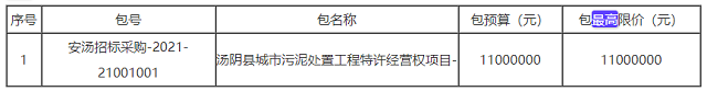 注:本項目采用單價報價,污泥處置補貼費綜合單價暫定385元/噸,投標(biāo)報價超過采購預(yù)算單價的作為無效投標(biāo)處理。