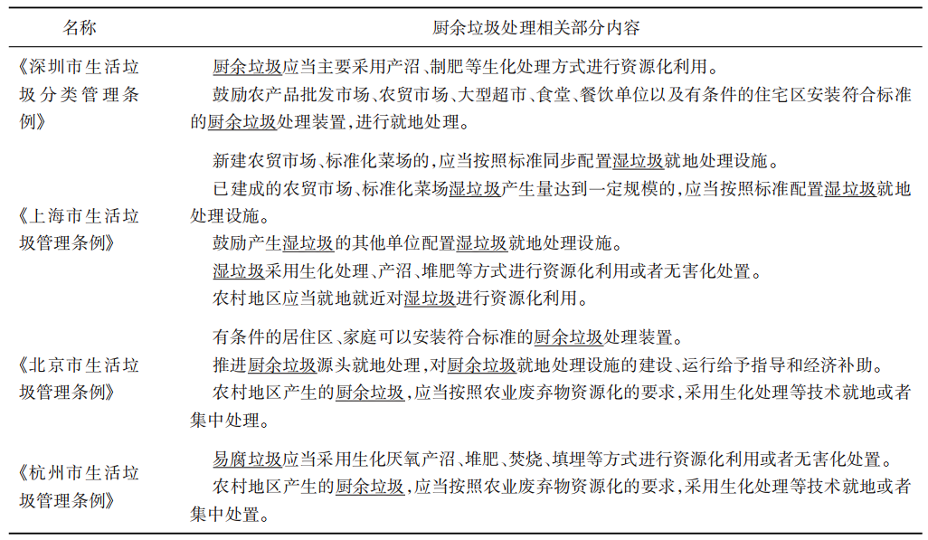 表3    中國部分省市地區(qū)廚余垃圾處理相關(guān)政策