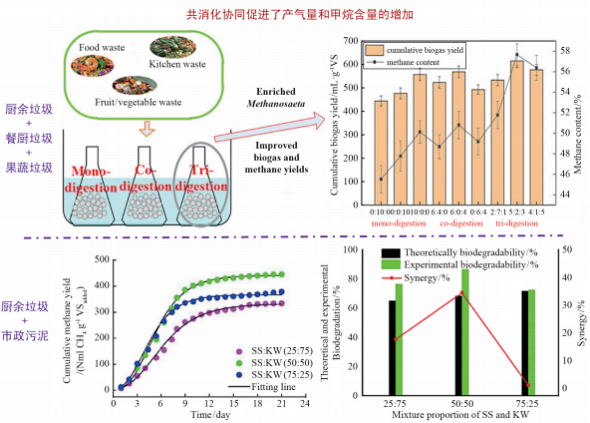另一方面,將廚余垃圾與其他有機(jī)廢棄物混合共消化,其不同基質(zhì)間對產(chǎn)沼的協(xié)同效應(yīng)也不容忽視。