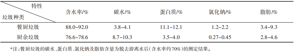 表2   餐廚垃圾和廚余垃圾物化特性比較