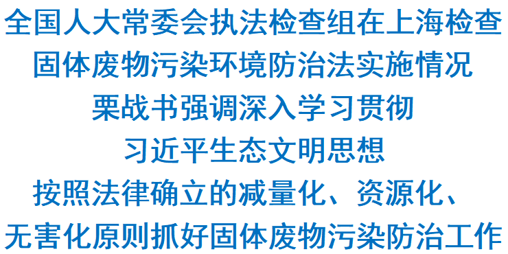 中共中央政治局常委、全國人大常委會委員長栗戰(zhàn)書9月12日至14日率全國人大常委會執(zhí)法檢查組在上海檢查固體廢物污染環(huán)境防治法實施情況。他強調(diào),要深入學(xué)習(xí)貫徹習(xí)近平生態(tài)文明思想,按照法律確立的減量化、資源化、無害化原則抓好固體廢物污染防治工作。