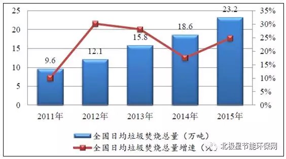 “十二五”期間中國垃圾焚燒總量變化