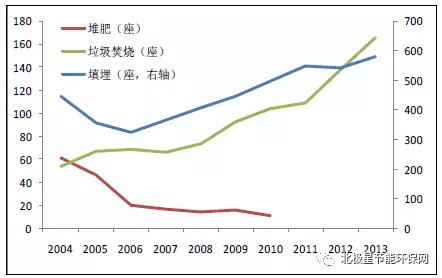 垃圾焚燒處理廠數(shù)量比例不斷增長,%