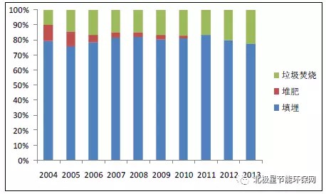 垃圾焚燒可以快速處理堆積成山的垃圾,有效減小垃圾的體積50%-90%,同時(shí)通過焚燒發(fā)電,既解決了垃圾填埋的占地、污染問題,又實(shí)現(xiàn)了能源的清潔回收利用。目前,我國城市生活垃圾累積堆存量已達(dá)70 億噸,據(jù)國家統(tǒng)計(jì)局?jǐn)?shù)據(jù)顯示,截止2013 年我國生活垃圾填埋比例占68.2%,垃圾焚燒占30.1%,而2014年、2015年、2016年垃圾焚燒一直保持快速增長的態(tài)勢。