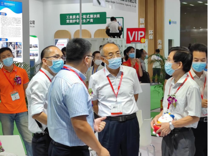 展會首日,廣東省人大環(huán)境與資源保護(hù)委員會副主任何真、廣東省生態(tài)環(huán)境二級巡視員鄧?yán)^勇等領(lǐng)導(dǎo)組成的貴賓參觀團(tuán)蒞臨朗坤環(huán)境展位參觀。