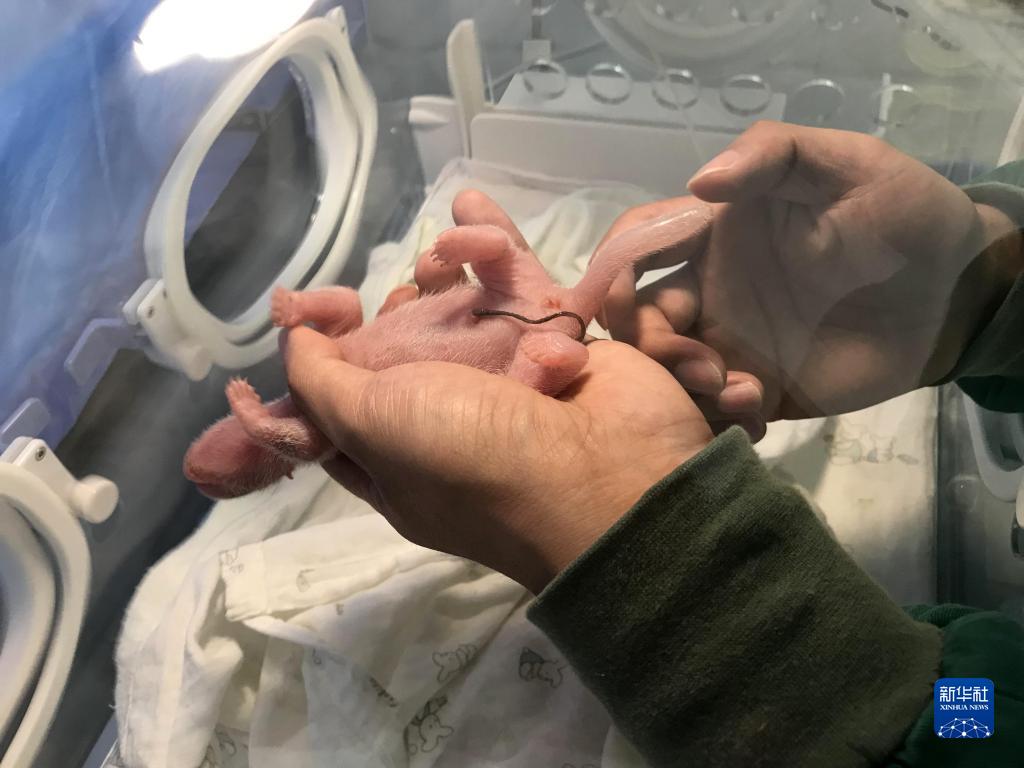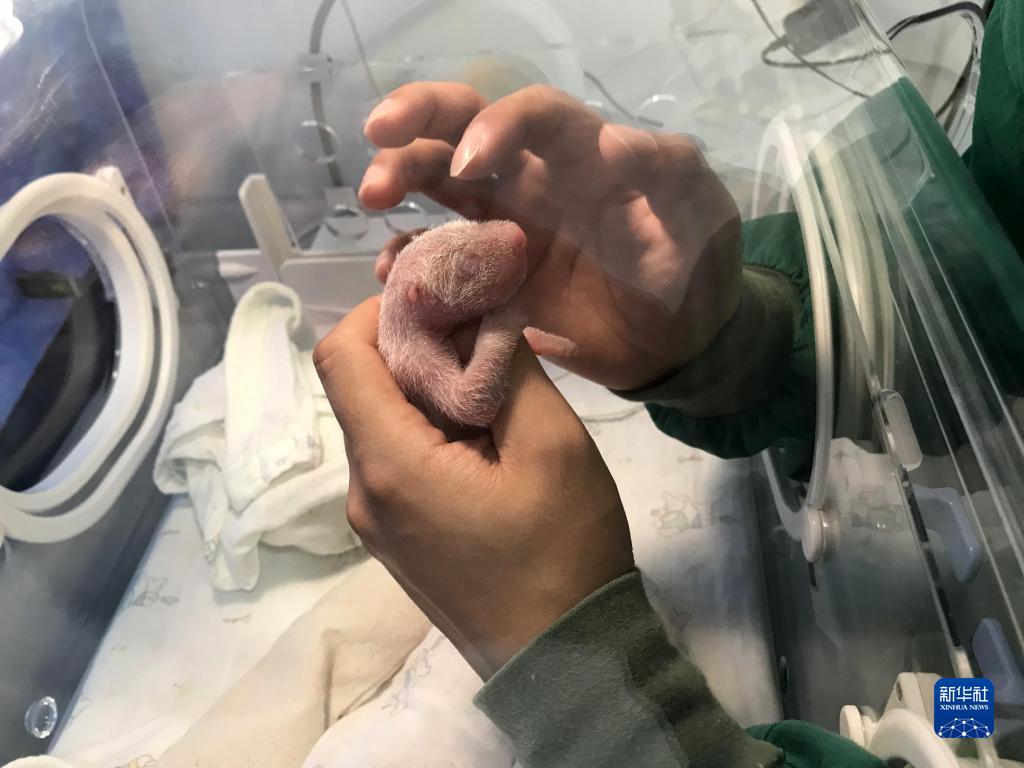 這是9月13日拍攝的剛剛出生的大熊貓幼仔。