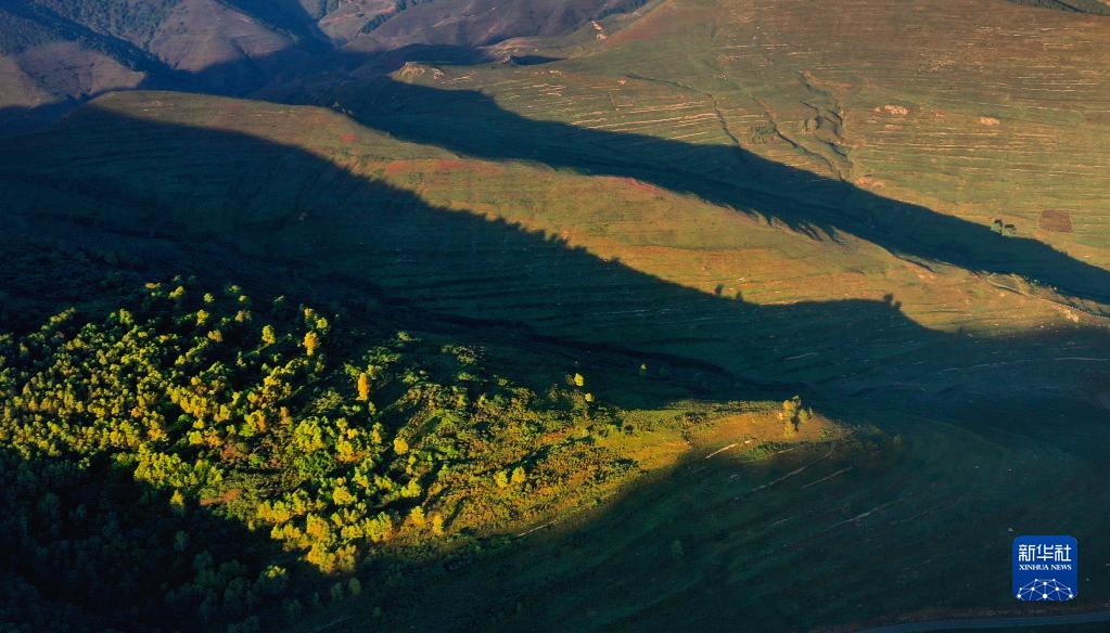 9月23日,陽光照耀在空中草原上(無人機(jī)照片)。