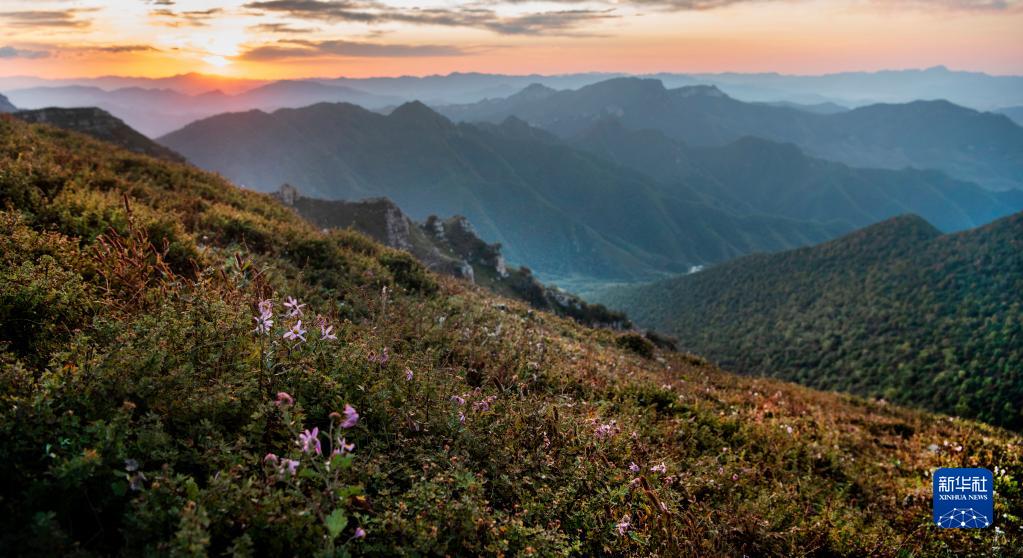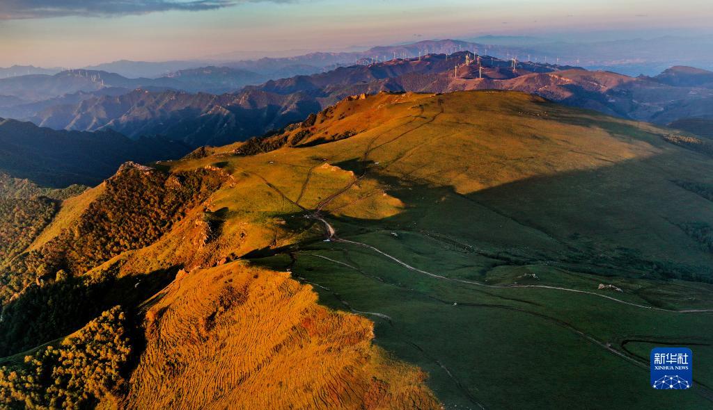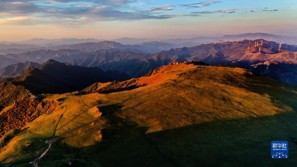 9月23日,一縷陽光照耀在空中草原的山梁上(無人機(jī)照片)。