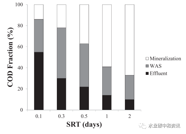 在較SRT和HRT下運行時,產(chǎn)量接近其最大值,因而可在接近最大污泥產(chǎn)率情況下,可最優(yōu)地利用COD產(chǎn)出生物質(zhì)。在這些運行條件下,與傳統(tǒng)HRAS工藝相比,其去除大部分(50~80%)進水COD時所需求的曝氣量減少近60%。