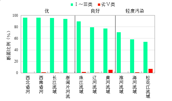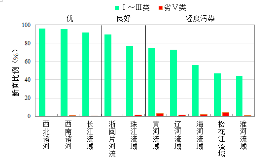 1-8月,長江、黃河、珠江、松花江、淮河、海河、遼河等七大流域及西北諸河、西南諸河和浙閩片河流水質(zhì)優(yōu)良(Ⅰ~Ⅲ類)斷面比例為83.4%,同比上升0.9個(gè)百分點(diǎn);劣Ⅴ類斷面比例為1.2%,同比下降1.1個(gè)百分點(diǎn)。主要污染指標(biāo)為化學(xué)需氧量、高錳酸鹽指數(shù)和總磷。其中,西北和西南諸河、長江流域和浙閩片河流水質(zhì)為優(yōu);珠江、遼河和黃河流域水質(zhì)良好;淮河、海河和松花江流域?yàn)檩p度污染。