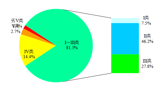 1-8月,3641個(gè)國家地表水考核斷面中,水質(zhì)優(yōu)良(Ⅰ~Ⅲ類)斷面比例為81.5%,同比上升0.9個(gè)百分點(diǎn);劣Ⅴ類斷面比例為1.4%,同比下降0.9個(gè)百分點(diǎn)。主要污染指標(biāo)為化學(xué)需氧量、高錳酸鹽指數(shù)和總磷。