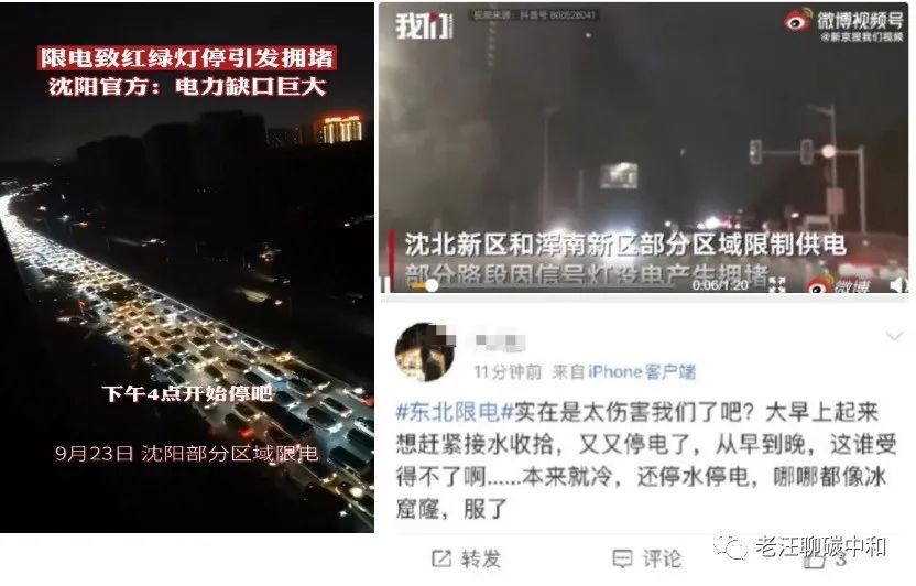 供給的缺口,需求的增長,導(dǎo)致了煤價的高居不下,國內(nèi)的煤炭產(chǎn)量現(xiàn)目前已經(jīng)跟不上需求了。這個時候,朋友再次問了我一個問題:“國外的煤炭漲價,國內(nèi)的煤炭就一定要漲價嗎?單就煤炭這一項資產(chǎn),在國內(nèi)漲價幅度國外還高,既然國內(nèi)煤礦大多數(shù)現(xiàn)目前都控制在國家手里,那是不是可以讓國家降降碳價,讓發(fā)電企業(yè)都正常運作供電呢?”國家降煤炭的價可以,發(fā)電企業(yè)正常供電也可以,但到最后這個電用到了生產(chǎn)企業(yè)的頭上,產(chǎn)品造出來了,賣到國外去了,因為美國印鈔造成的通貨膨脹而造成的大宗漲價導(dǎo)致的生產(chǎn)成本上升,但產(chǎn)品的價格卻沒有變化,那這個通脹是不是就被中國全吃下去了呢?所以我本人愿意相信,國家是出于為了“輸出通脹”(有很多公眾號已經(jīng)解釋了這個理論,在此就不過多介紹了)這樣的一個初衷,擺脫美國多年以來對市場的控制,選擇了將國內(nèi)生產(chǎn)的煤炭價格控制在高點,用限電政策倒逼各企業(yè)對產(chǎn)品漲價賺取利益而不是一味地內(nèi)部惡性競爭——降低售價,擴大產(chǎn)能,拼個你死我活,近期是可以賺點快錢,但真的等到國外訂單一撤走,便是尸橫遍野。可是,讓人沒能想到的是:東北一個旁觀者卻挨打了!我們仔細(xì)觀察發(fā)改委“紅燈”名單會發(fā)現(xiàn)里面并沒有東北各省,“能耗雙控”的名單里也沒有東北地區(qū),那它為什么限電呢,而且還把百姓的生活用電一起給限了。問題就再一次回到了最初的起點:限電嘛,就是沒電用了唄!那為什么沒電用了了呢?因為發(fā)電的煤沒了唄!可以說,東北的限電,跟雙控的限電并沒有太大關(guān)系,但卻確確實實為國家的“選擇”買了單。煤價上漲已成既定現(xiàn)實,東北的燃煤火電占比本身又較高,高昂的煤價導(dǎo)致了發(fā)電廠一直不敢買煤發(fā)電,等到存貨都要用完的時候,就只能通過限電的方式來解決眼前的問題了。上文中也提到,8月份內(nèi)蒙古已經(jīng)有很多礦廠復(fù)開了,但礦場的重啟需要時間;進口煤炭本身就有缺口,從國外運到東北也需要時間,在電網(wǎng)供需兩端負(fù)荷嚴(yán)重不符的情況下,只能關(guān)掉電網(wǎng)限制用電,于是乎就有了現(xiàn)在的慘狀。到了這個時候,再去爭論是“搞環(huán)?!边€是“對抗通貨膨脹”還是其他原因?qū)е铝藮|北的停電,似乎已沒有意義了,問題擺在眼前了,要做的是立即做出解決問題的方案,而國家其實已經(jīng)開始釋放煤炭的產(chǎn)能來保障東北的電力,但如上述所說,重啟是需要時間的!接下來的幾個月東北人民都將要面臨隨時停電、停水的窘境,下面的圖片也只是東北老百姓遭遇的冰山一角,甚者,一些地方已經(jīng)出現(xiàn)一些一氧化碳中毒等嚴(yán)重危害老百姓健康的問題。這樣的景象是我們所有人都不想看到的!
