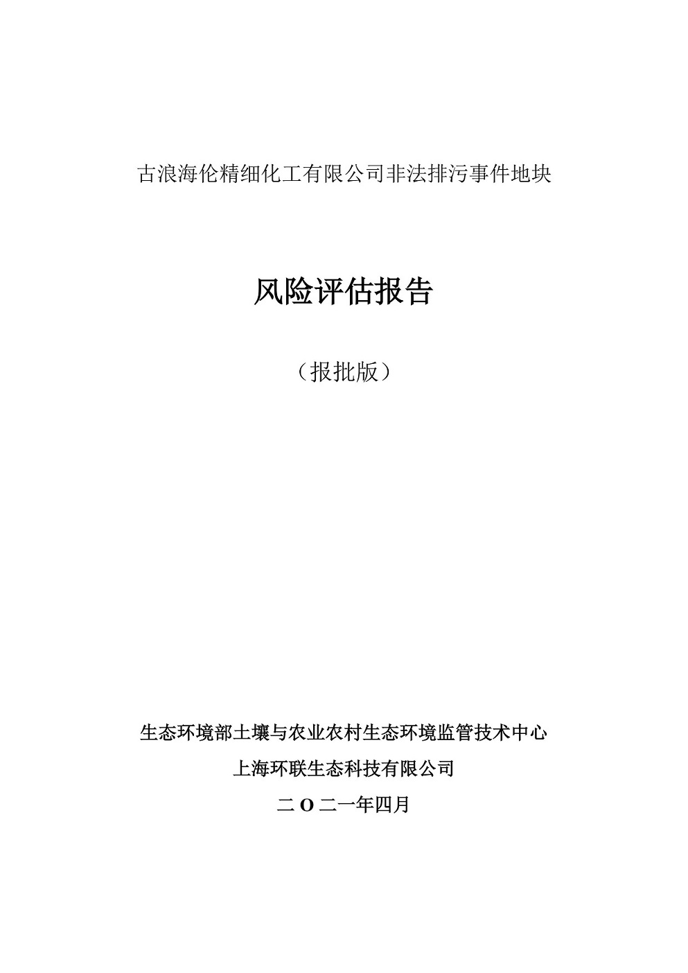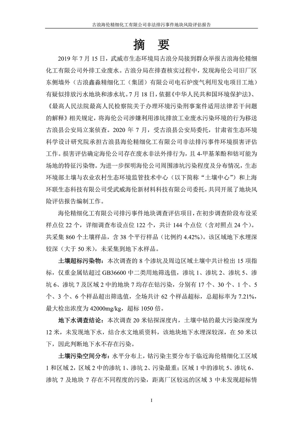 古浪海倫精細化工有限公司非法排污事件地塊---風險評估報告