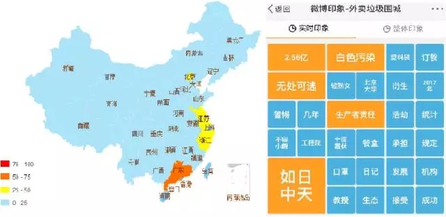 抽取702條網民評論發(fā)現(xiàn),關注地域最多的是廣東、浙江、江蘇、北京,關注最熱詞為垃圾分類、塑料餐盒、環(huán)保等,輿情熱度趨勢為平穩(wěn)。