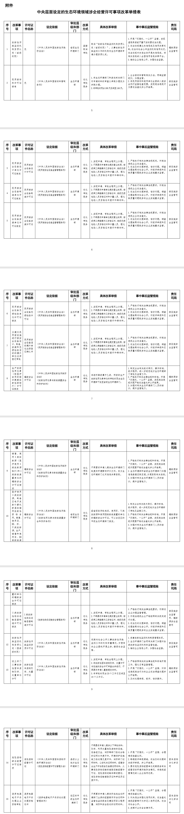 附件:中央層面設(shè)定的生態(tài)環(huán)境領(lǐng)域涉企經(jīng)營(yíng)許可事項(xiàng)改革舉措表