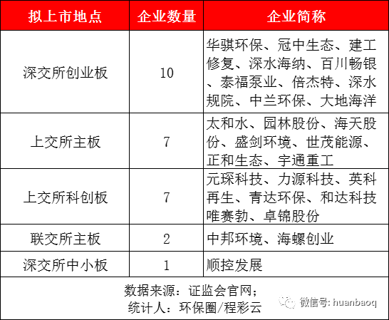 僅剛剛過去的第三季度,就有海螺創(chuàng)業(yè)、云南水務(wù)、正和生態(tài)、宇通重工、深水規(guī)院、中蘭環(huán)保、大地海洋、和達(dá)科技、唯賽勃等14家傳來擬掛牌分拆上市的消息,這數(shù)量已是去年全年掛牌上市數(shù)量的總和。3個(gè)月累計(jì)14家企業(yè)登陸資本市場(chǎng),也就是說,基本上不到一周,就會(huì)有一家環(huán)保企業(yè)傳來喜訊,走紅毯,敲終上市。“本以為受年初IPO全面審核趨嚴(yán)的信號(hào),今年環(huán)保產(chǎn)業(yè)IPO熱潮會(huì)降溫,沒想到不降反增。也沒有像其他行業(yè)因?yàn)楸O(jiān)管部門突擊檢查,紛紛陷入撤回材料終止審核的窘態(tài)?!蹦抄h(huán)保投行人士表示。《第一財(cái)經(jīng)》曾經(jīng)做過統(tǒng)計(jì),僅在今年3月的前18天,就有8家科創(chuàng)板、12家創(chuàng)業(yè)板企業(yè)終止審核。今年2月份以來,已有逾50家IPO企業(yè)因撤回材料而終止審核,其中有16家是因?yàn)槌橹鞋F(xiàn)場(chǎng)檢查而撤回材料。反觀常常被資本忽視的環(huán)保行業(yè),卻是“真金不怕火煉”,在年初政策風(fēng)聲較緊的3月,迎來了掛牌上市的高潮,當(dāng)月共有園林股份、順控發(fā)展、海天股份、建工修復(fù)、深水海納、元琛科技等6家企業(yè)敲鐘上市,掛牌數(shù)量比今年任何一個(gè)月都要多,甚至有望創(chuàng)下年度IPO數(shù)量最多的月份。相比股市上流行的各種“XX茅”,或許“環(huán)保茅”才是真正的王者。同時(shí),我們還欣喜地看到,去年下半年陸續(xù)IPO過會(huì)的同興環(huán)保、華騏環(huán)保、百川暢銀環(huán)保、太和水、建工環(huán)境、深水海納、海天股份、元琛環(huán)保、盛劍環(huán)境、青達(dá)環(huán)保,中蘭環(huán)保等,這11家環(huán)保上市都在今年上半年成功掛牌上市,正式邁入資本市場(chǎng)。不過值得一提的是,同樣去年下半年IPO過會(huì)的華新綠源環(huán)保就沒有那么順利了,直到現(xiàn)在也遲遲沒有敲鐘上市的消息。創(chuàng)業(yè)板/科創(chuàng)板成IPO主戰(zhàn)場(chǎng)