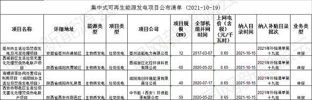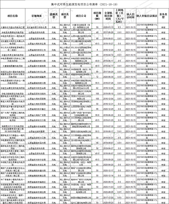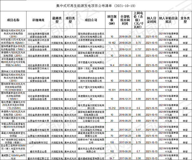 2021年十九批集中式可再生能源發(fā)電并網(wǎng)項(xiàng)目