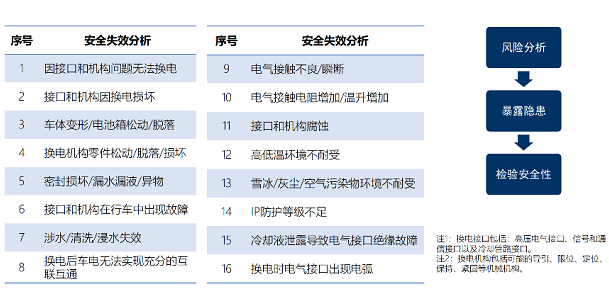 《要求》包括安全要求、試驗方法及檢驗規(guī)則,其中安全要求涉及一般要求、整車要求和部件要求,分別規(guī)定了5000次(卡扣式)和1500次(螺栓式)的最低換電次數(shù)要求。換電安全試驗流程如下: