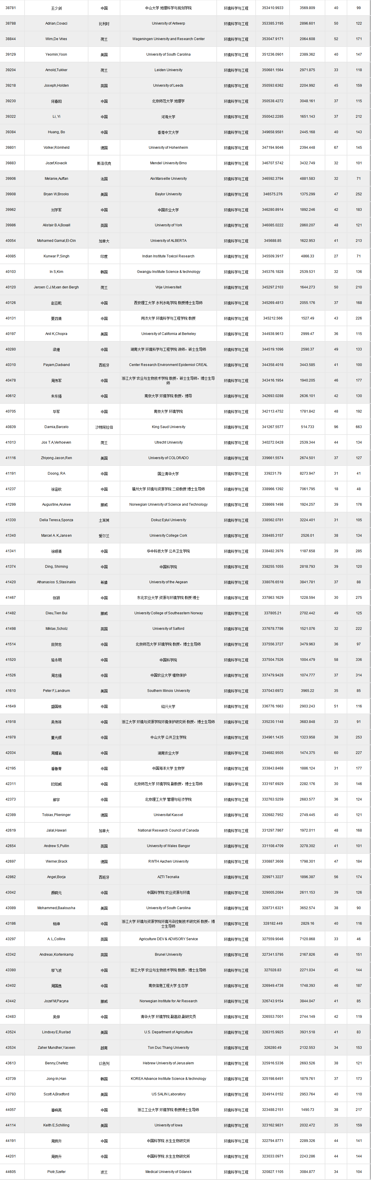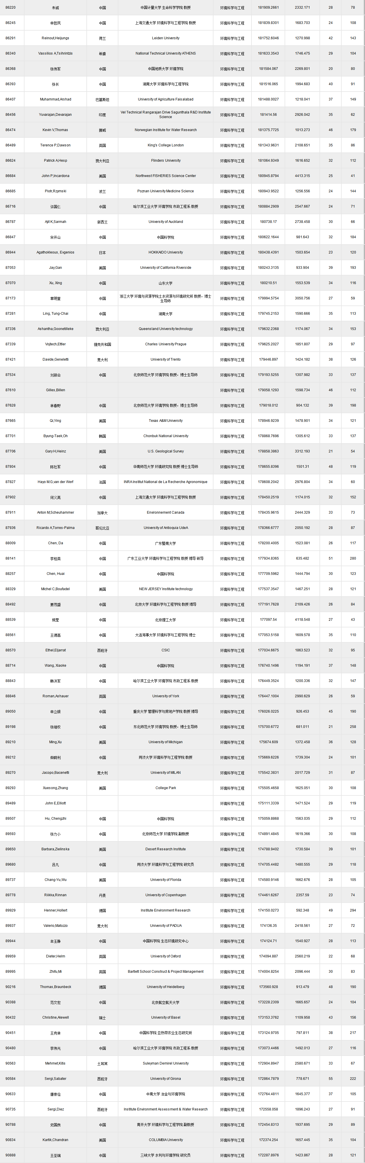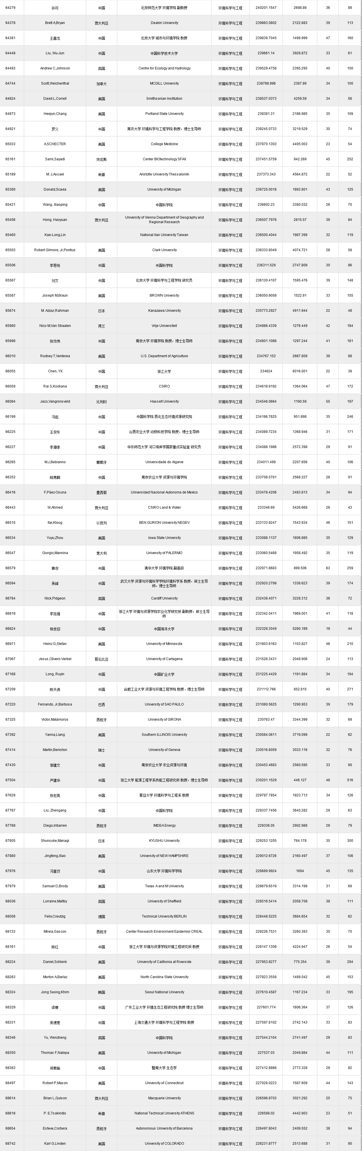 環(huán)境科學(xué)與工程類如下:(點(diǎn)擊查看原圖)