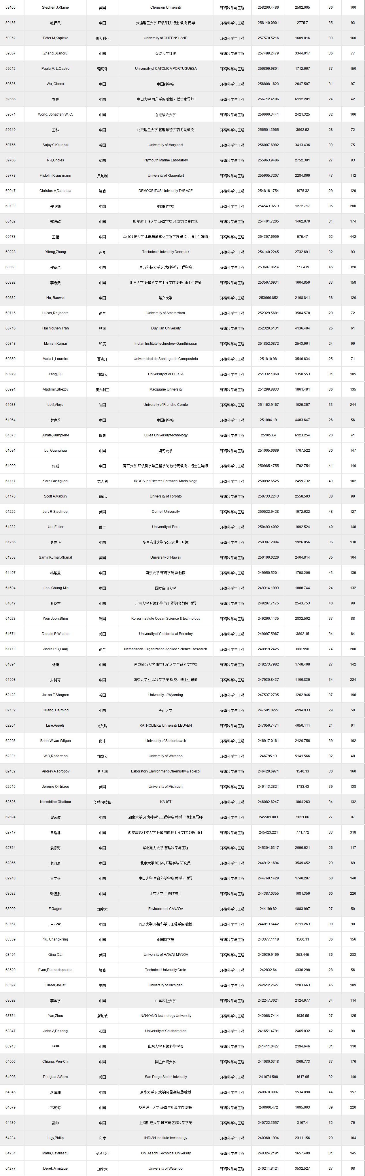 全球頂尖前10萬科學(xué)家排名.xlsx