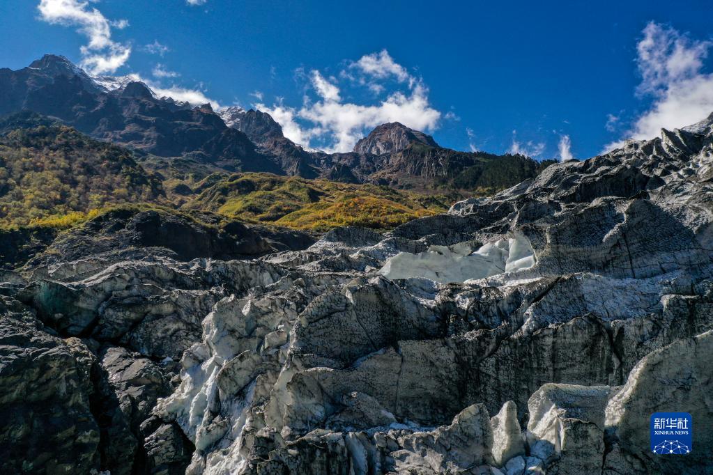 明永冰川及原始森林秋景(無人機照片,10月28日攝)。