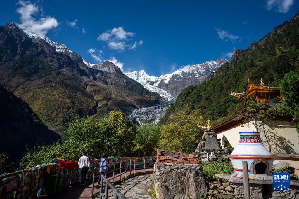 游客在明永冰川景區(qū)游玩(10月28日攝)。