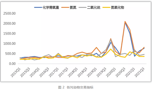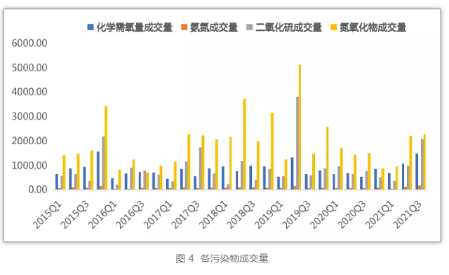 四項排污權(quán)成交量:化學需氧量成交量為1485.68噸、氨氮成交量為171.10噸、二氧化硫成交量為2087.18噸、氮氧化物成交量為2275.81噸。
