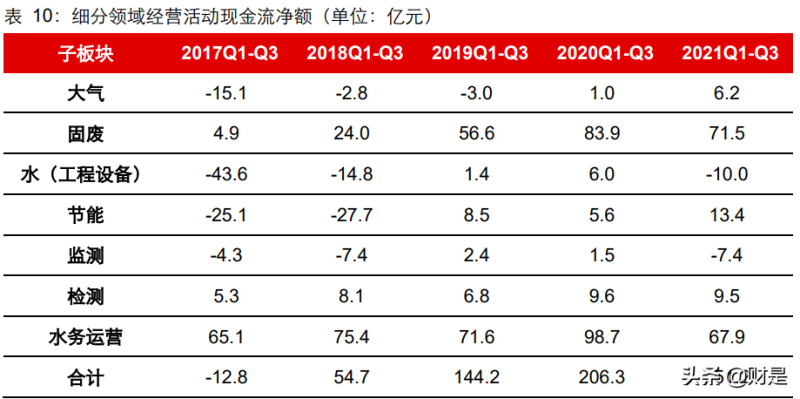 經(jīng)營活動現(xiàn)金流凈額較為穩(wěn)健,特別是固廢方向: