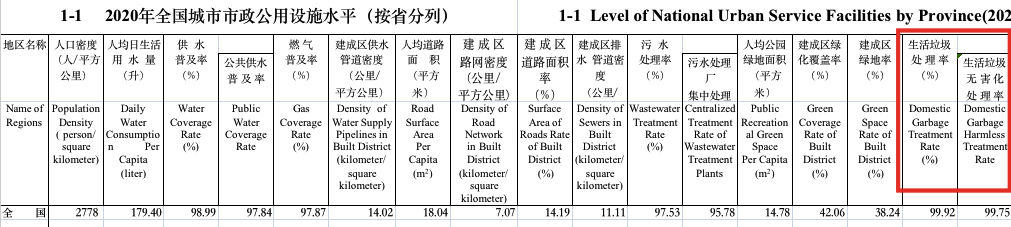 村鎮(zhèn)環(huán)衛(wèi)歷史上幾乎是空白,近年來通過城鄉(xiāng)環(huán)衛(wèi)一體化建設(shè)、農(nóng)村廁改,方使村鎮(zhèn)初步有了市容環(huán)衛(wèi)管理體系。從《年鑒》數(shù)據(jù)來看,村鎮(zhèn)環(huán)衛(wèi)發(fā)展雖然面臨種種難題,但依舊取得了巨大的進展。這兩個數(shù)字經(jīng)常是混淆在一起的,但在《年鑒》中,這是不同的統(tǒng)計數(shù)據(jù)。2020年,全國城市生活垃圾處理率為99.92%,全國城市生活垃圾無害化處理率為99.75%,這意味著全國仍有0.25%的生活垃圾未得到無害化處理,按2020年全國城市生活垃圾清運量計算,大約有58.78萬噸生活垃圾未能無害化處理,如果直接用表1中的垃圾無害化處理量和垃圾清運量相減,則可以到60萬噸這個整數(shù),大致相當(dāng)。
