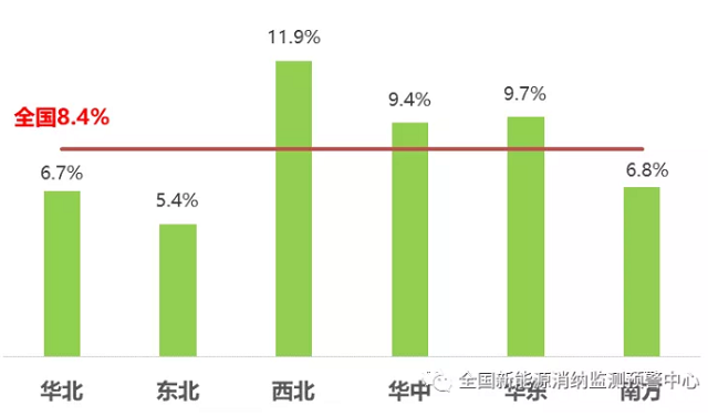 三季度,華北地區(qū)合計(jì)棄風(fēng)電量2.8億千瓦時(shí),棄光電量1.4億千瓦時(shí)。其中,北京、天津基本無棄電問題,山西、山東棄電率維持在較低水平。河北、蒙西棄風(fēng)率分別為0.7%、2.4%,同比下降0.4、0.3個(gè)百分點(diǎn)。蒙西棄光率為2.4%,同比上升1.4個(gè)百分點(diǎn)。