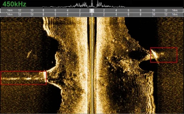 無(wú)人船走航現(xiàn)場(chǎng)及側(cè)掃聲納示意圖
