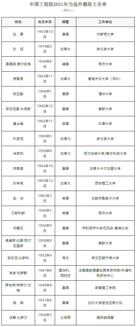 關(guān)于公布2021年中國科學(xué)院院士增選當(dāng)選院士名單的公告