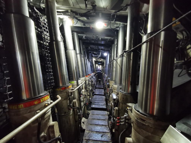 坐在生產(chǎn)指揮車上,記者從羊場灣煤礦的一號井口開始下井,車輛沿著運(yùn)輸巷道緩緩行駛了約12公里后,到達(dá)了采煤工作面。在垂直地面800米深的井下,早班工人正在忙碌地進(jìn)行設(shè)備檢修,給中班和夜班采煤提供良好的生產(chǎn)準(zhǔn)備。