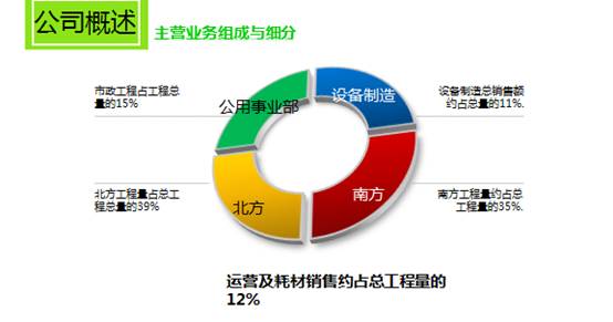 如上圖可見,紫科的主要業(yè)務細分為四大板塊,第一是設備制造,設備制造總銷售額約占總量的11%;第二是公用事業(yè)板塊,市政工程占工程總量的15%,在全國主要有兩個點。第一點在廣州總部,第二點在北京,這兩點一線負責全國市政的推廣;第三是北方板塊主要是工業(yè)板塊,總部在山東濰坊,是我們的全資子公司,北方工程量占總工程總量的39%;第四是南方板塊,總部在南京,南方工程量約占總工程量的35%。在運營和耗材的銷售,從2015年開始已經占到總銷售額的12%。