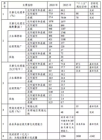附表1 “十二五”全國城鎮(zhèn)生活垃圾處理主要指標(biāo)實(shí)現(xiàn)情況