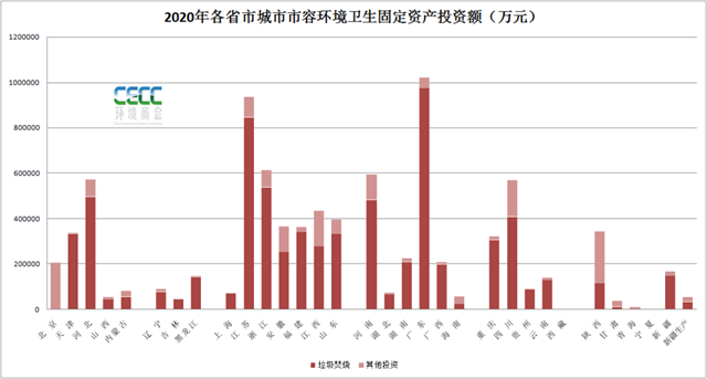 從區(qū)域來(lái)看,2020年,廣東(97.3億元)、江蘇(84.6億元)、浙江(53.7億元)以及河北(49.7億元)、河南(48.3億元)等地環(huán)境市容衛(wèi)生設(shè)施建設(shè)投入較大,其中大部分資金用于垃圾處理設(shè)施建設(shè)。整個(gè)“十三五”時(shí)期,北京、廣東、江蘇等地城市環(huán)境衛(wèi)生固定資產(chǎn)投資較大,其中北京五年的投資額接近400億,特別是2016年、2017年兩年,投資額均在百億以上。