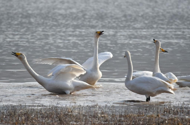 據(jù)鳥類專家介紹,作為國家二級保護動物,大天鵝頸項修長,姿態(tài)優(yōu)美,是世界上飛得最高的鳥類之一。每年十一月,它們會離開繁殖地往越冬地遷徙,棲息在青海黃河一帶越冬,來年二三月再踏上返程。