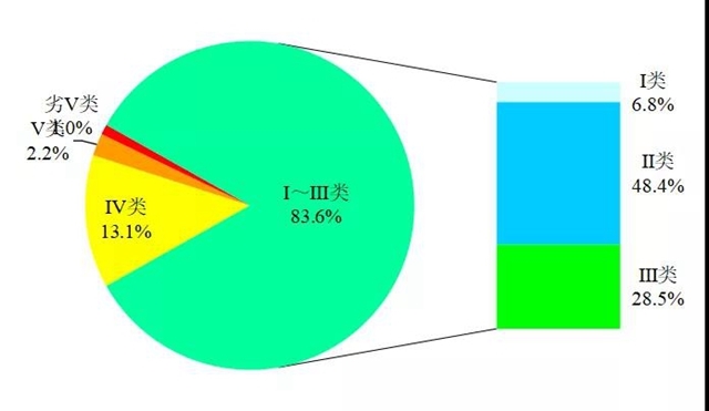 圖2 1-11月全國(guó)地表水水質(zhì)類(lèi)別比例
