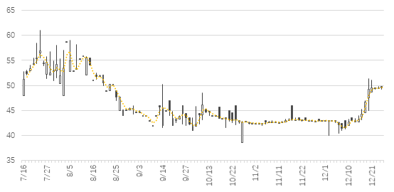 價(jià)格方面,截至12月24日,全國碳市場掛牌協(xié)議交易平均價(jià)格約45.9元/噸,最高價(jià)61.07元/噸,最低價(jià)38.5元/噸,絕大部分在40到60區(qū)間內(nèi)波動(dòng),總體呈現(xiàn)波動(dòng)降低的趨勢,12月以來隨著履約期臨近,碳價(jià)開始逐步升高,從12月初的約42元/噸回升到50元/噸左右,12月21日大宗交易也出現(xiàn)了46.3元/噸的較高交易價(jià)格。氣候投融資試點(diǎn)工作將著力探索支持全國碳市場長期平穩(wěn)運(yùn)行的相應(yīng)手段,推動(dòng)碳市場提供更穩(wěn)定的長期價(jià)格信號,促進(jìn)減排活動(dòng)的實(shí)施效率,同時(shí)也挖掘碳配額的價(jià)值,為企業(yè)減排活動(dòng)提供更全面的支持。